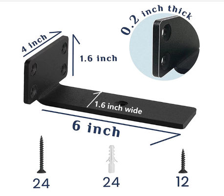 Estantes flotantes industriales rústicos de 6 pulgadas grueso negro recubierto de polvo de trabajo pesado 16